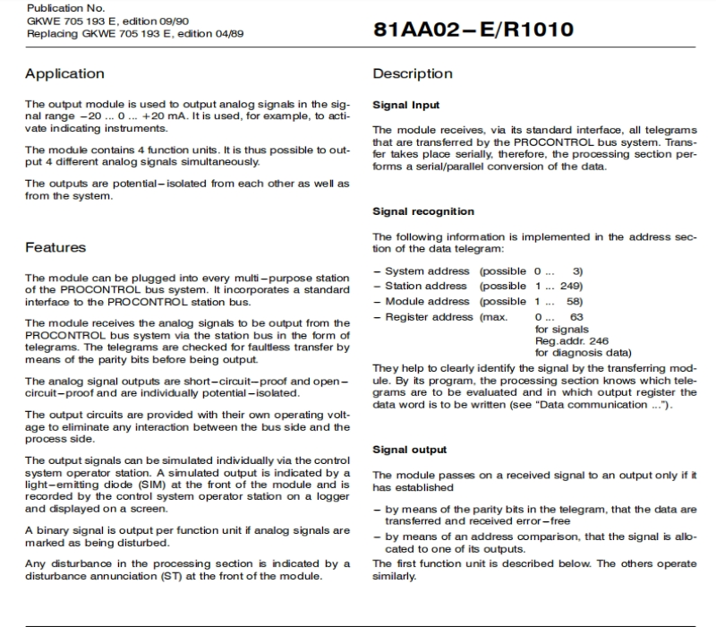 Features This module is suitable for various industrial automation applications, compatible with multiple control systems, providing efficient and reliable signal transmission.