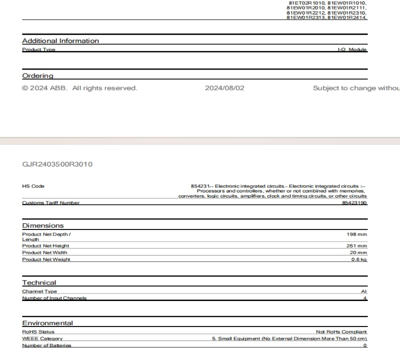 81ET03 GJR2403500R3010 Input Module