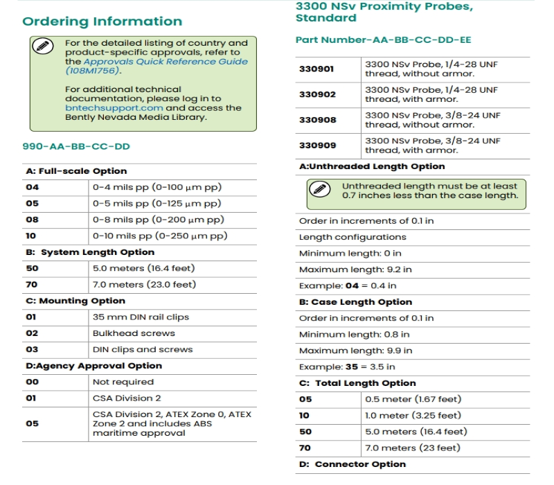 A: Bently Nevada 990 Series vibration sensor specifications typically include the following: