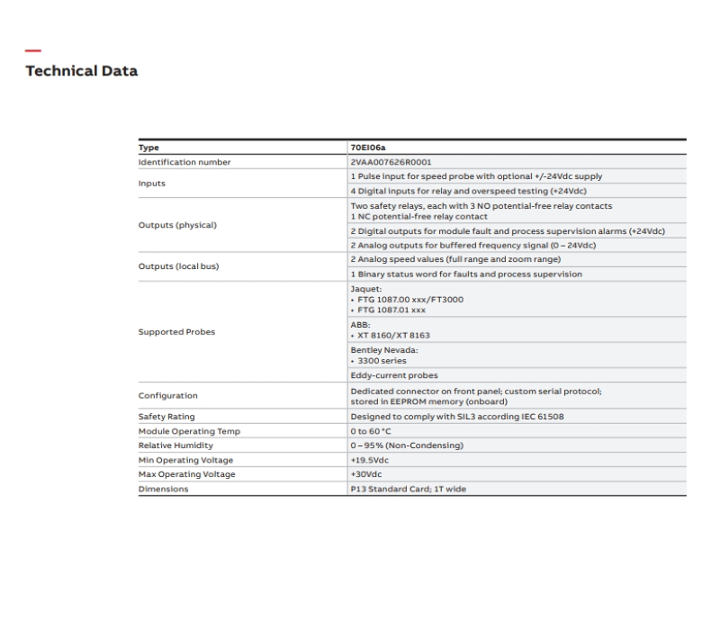 ABB 70EI05A-E Input Module for Speed Sensor