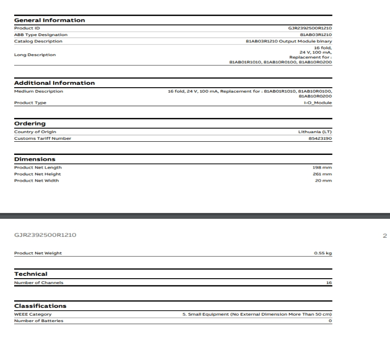 $766ABB 81AB03-1210 Binary Output Module