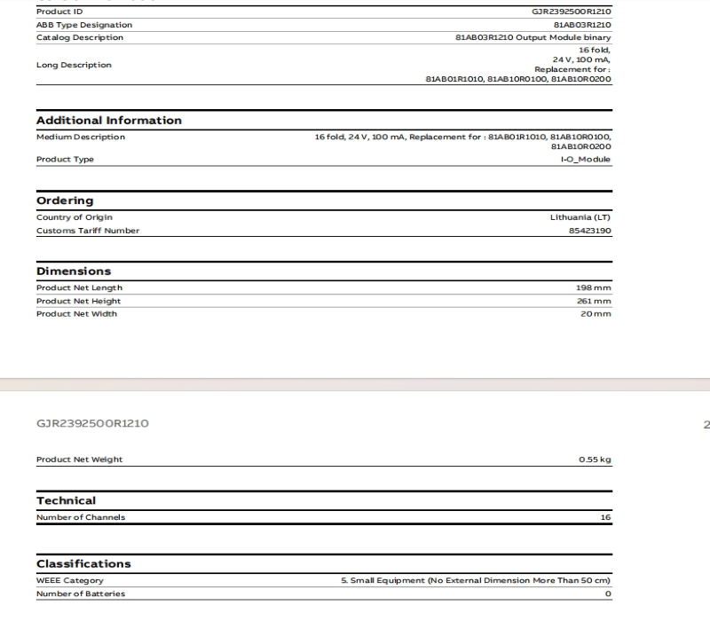 81AB03 GJR2392500R1210 Output Module Binary