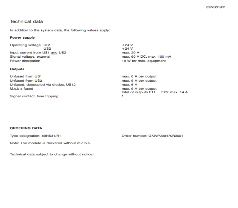 $900ABB 89NS31/R1 Fusing Module