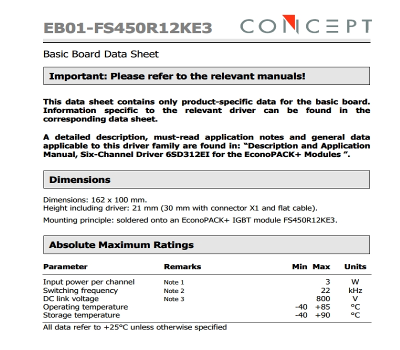 Recommended driver board: EB01-FS450R12KE3 (need to be matched with 6SD312EI Six-channel driver)
