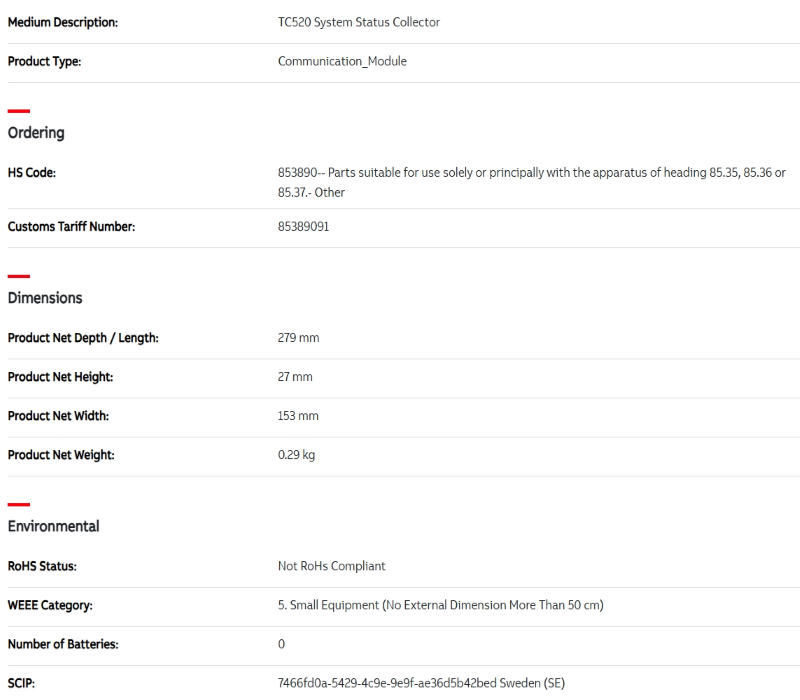 Technical specifications of TC520 3BSE001449R1 include: