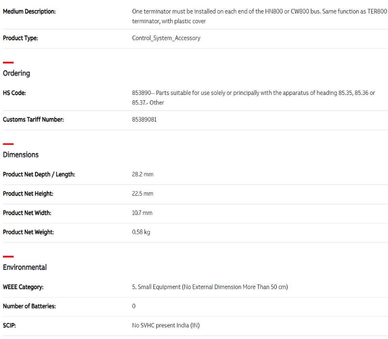 ABB TER8x0 HPC800 HN800 or CW800 Bus Terminator with cover