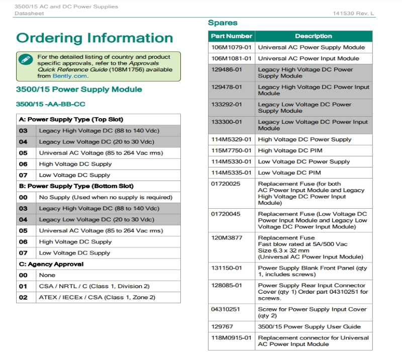 106M1079-01 and 106M1081-01 are two AC power input modules from Bently Nevada. There are some key differences between them: